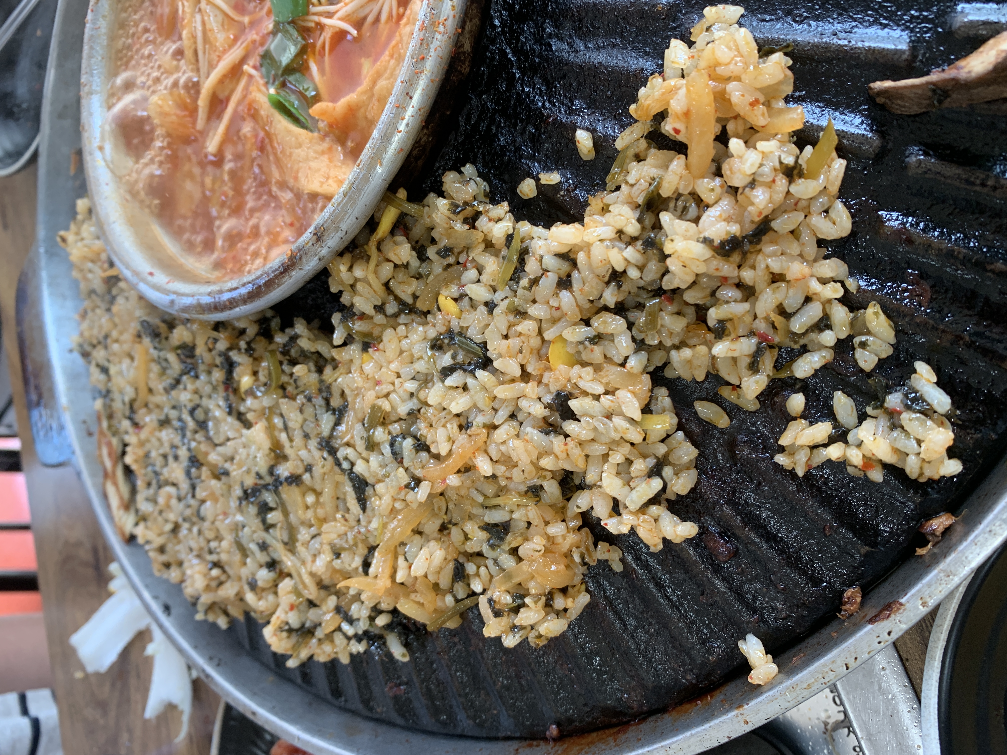 아까 가운데 있었던 조린 찌개를 가져가주셔서 밥을 하나 볶아주셨습니다.
