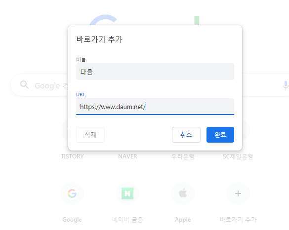 아래줄 오른쪽에 바로가기 추가 버튼 보이시나요?