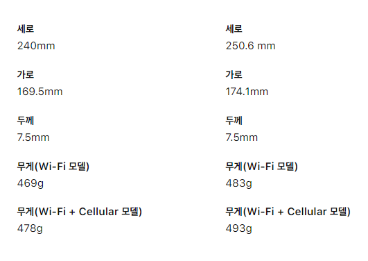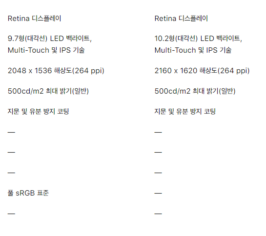 다운그레이드 - 디스플레이 sRGB X, 터치아이디 1세대로 하향. MS 오피스 무료 사용 불가 (10.1 인치 이하는 무료다)