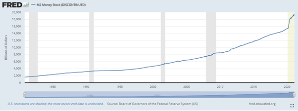 인터넷 돌아다니다가, 미국의 M2 관련해서 이야이가 있어서 직접 FRED들어가서 그래프를 확인해봤다.