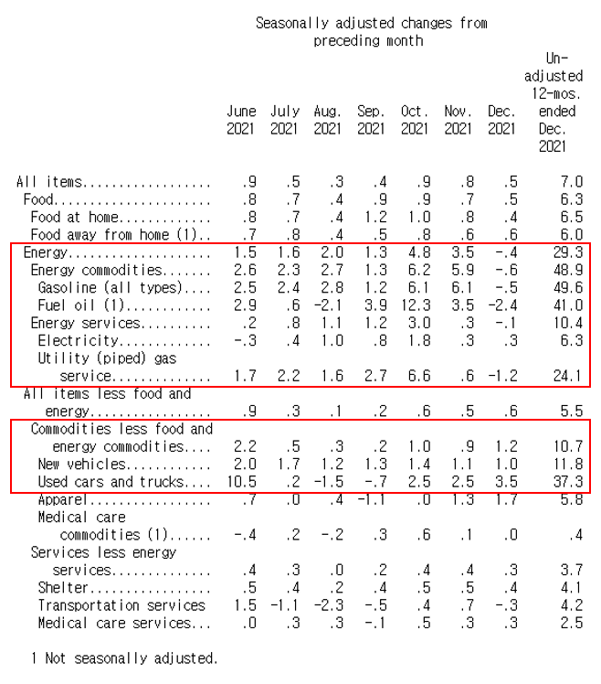 미국 인플레이션 수치가 발표되었다. 7% 그냥 단순 숫자가 중요한거라기보단..(사실 7이라고 안도하고 그날 지수가 달리긴했다. 역대급이었는데? ) 왜 물가가 오르고있다 판단했는지 봐야된다. 에너지와 중고차, 자동차 정도가 영향을 주고있다. 그리고 이 인플레이션 인자들은 안타깝게도 당분간 해결이 어렵다. 친환경 뽕.. 한국도 사실 비슷한 상황이다. 원자력 ㅠㅠ