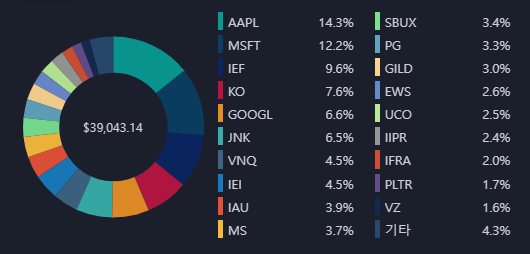 배당 : IEF $2.92 IEI $0.94 JNK $8.49 MSFT $8.96 (2022년 누적배당금 : $76.3)