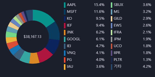 현금 확보가 조금 필요할거같아 매도를 했는데 돌아보니 너무 감정적으로 대응했던것같아서 아쉽다. 기계적으로 비중을 관리했어야되었는데.. 아무튼 AAPL, KO는 계속 비중을 늘릴 필요가 있다 판단했다.