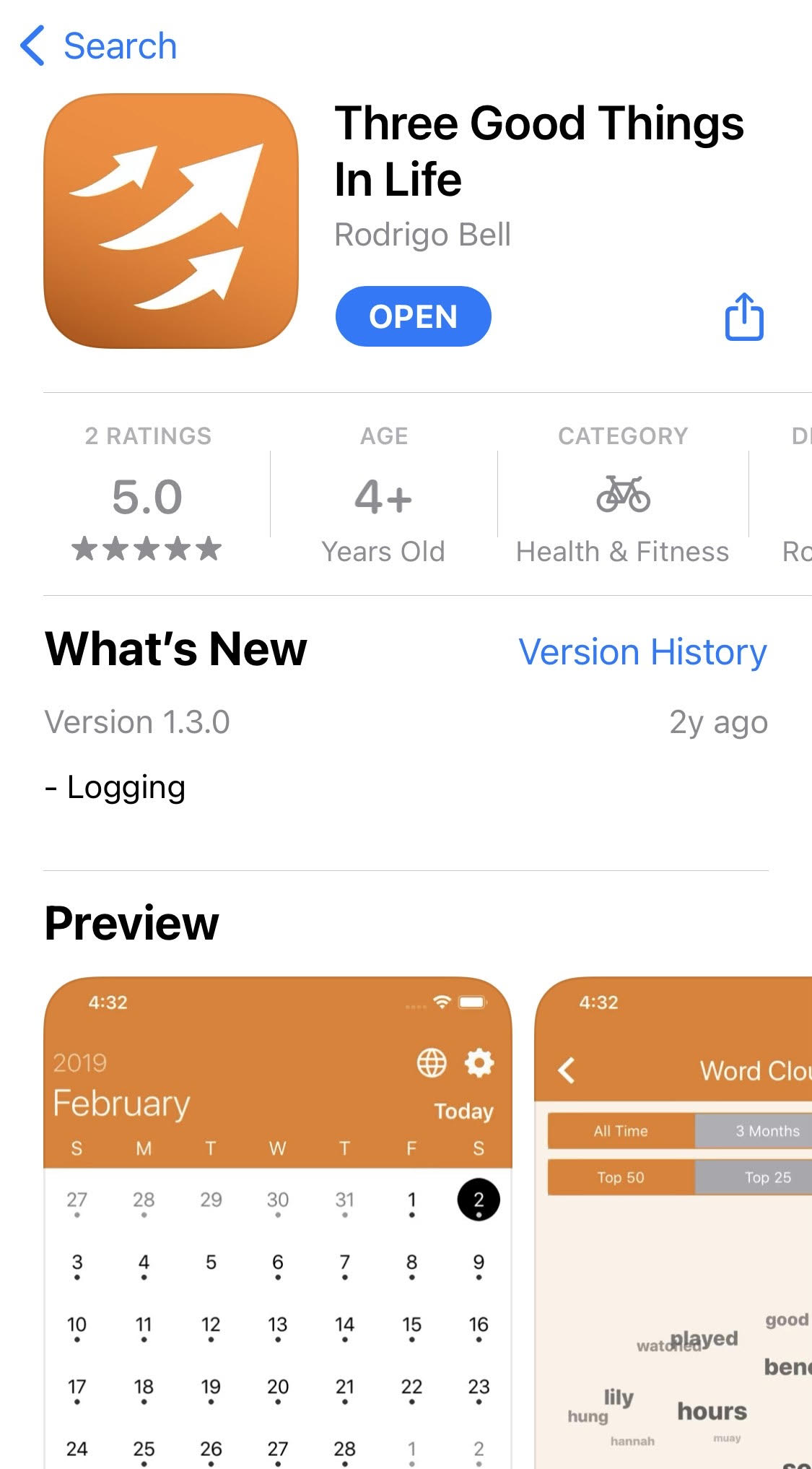 그냥 앱스토어에서 three good things를 검색하니 몇개가 나왔는데, 이게 깔끔해보여서 사용하게되었다.