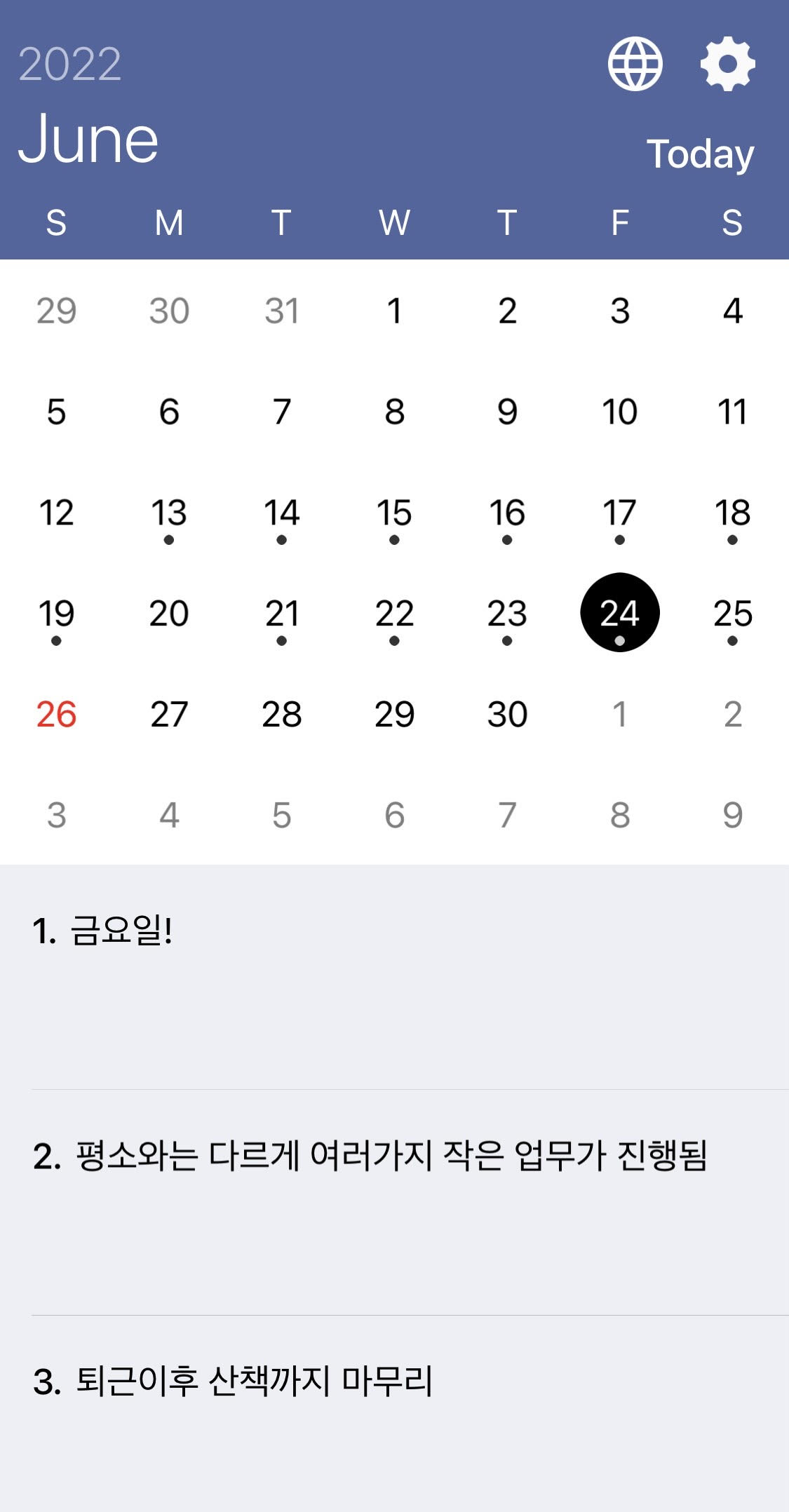 간단하게 달력 + 3개 내용을 쓸 수있는 칸 + 빈출단어 보여주는 버튼..