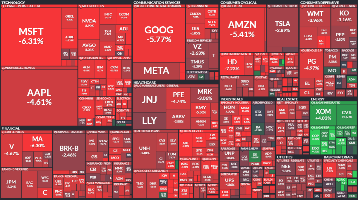 금요일 파월 연준 의장의 인플레이션 관련 강력한 발언으로 인해 뉴욕 3대 지수가 모드 크게 흘렀고, 곳곳에선 곡소리 + 욕소리 등이 울려퍼지고 있다.