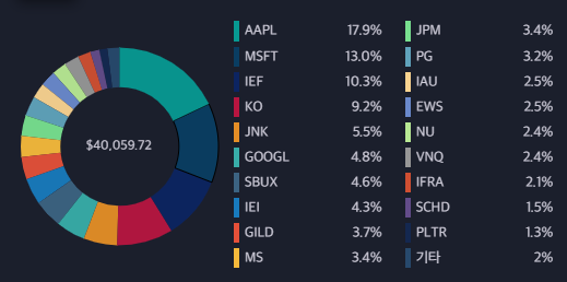 배당 : JNK $9.41, IEF $8.71, IEI $2.59, AAPL $9.38