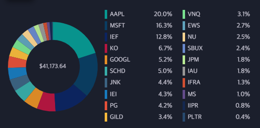 매수 : AAPL1ea, IEF 1ea, PG 1ea, NU 20ea, SCHD 2ea