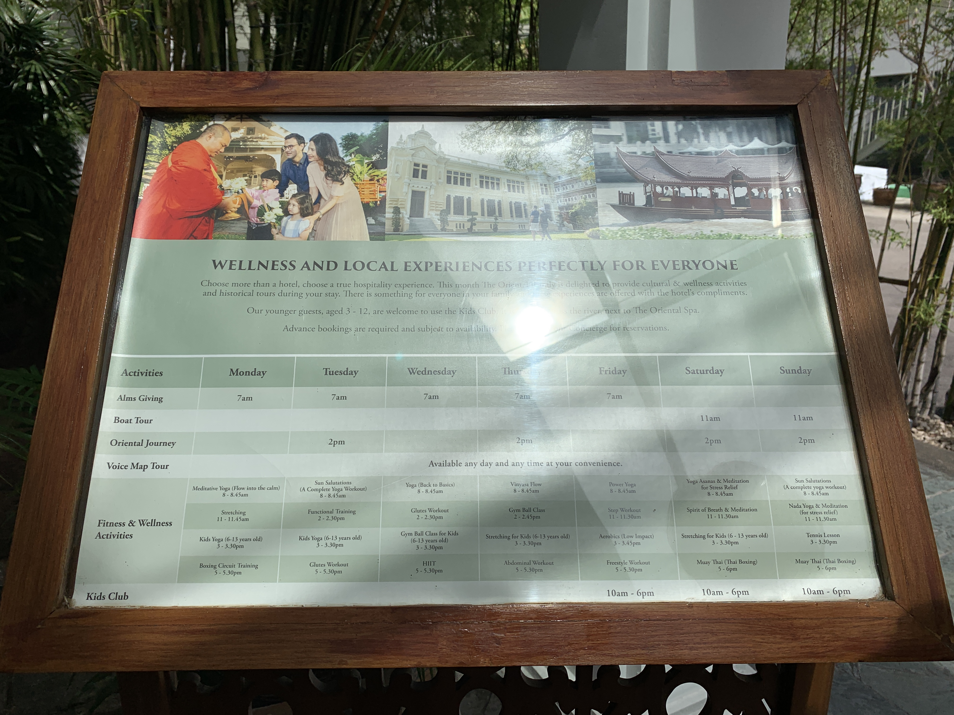 만다린 오리엔탈 방콕은 여러가지 프로그램이 있는데, 무료인것들도 제법 있습니다. 단체 요가, 운동 등인데
