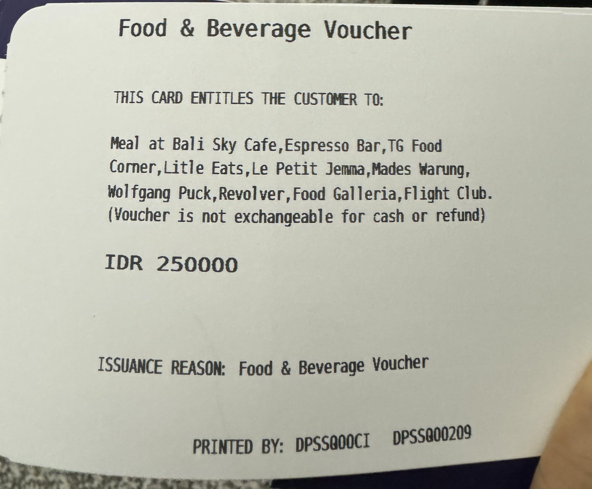 원래 비즈니스부터 라운지 사용이 가능한데 발리의 덴파사르 공항은 싱가포르 항공을 위한 라운지가 없는걸로 보였습니다. 대신에 IDR 250000짜리 바우처를 줬고 수 많은 매장에서 사용이 가능했습니다. 어설픈 라운지보다 이게 백만배 좋았습니다.