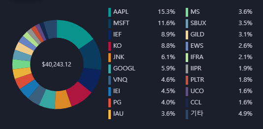 매수 : AAPL 1ea, KO 1ea, IEI 1ea, IFRA 2ea, PLTR 3ea, PG 1ea
